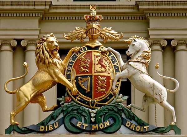 Девиз на гербе королевства Великобритания «Dieu et mon droit» написан на французском языке и переводится, как «Бог и мое право».