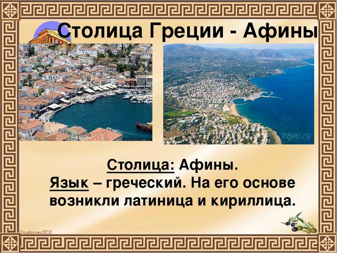 - На греческом языке говорят более 4000 лет, что делает его одним из древнейших языков мира. Множество научных терминов имеет греческое происхождение.
