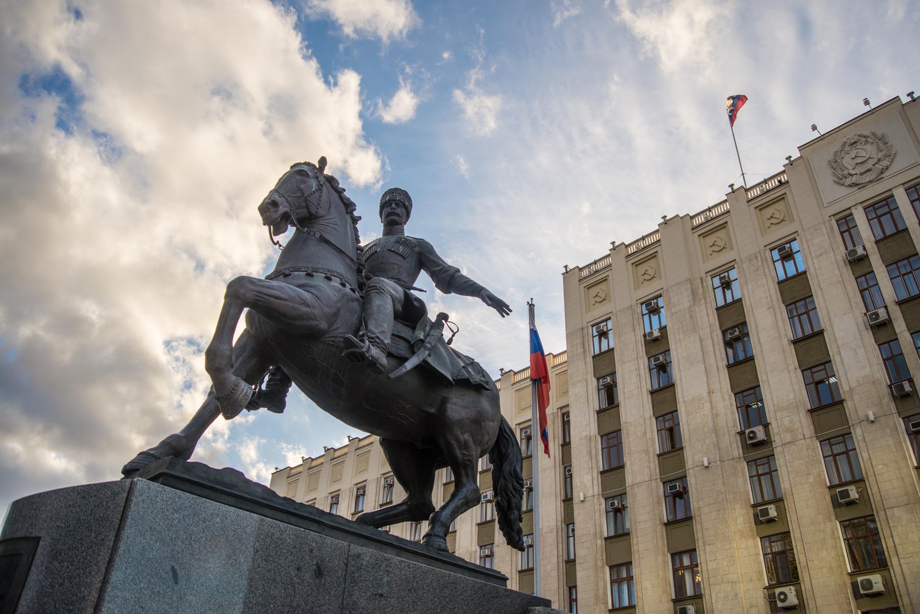 Установлен в 2005 году у здания краевой администрации. Автор проекта – Александр Аполлонов. Вместе с постаментом высота памятника составляет более 7 метров. Казак на коне одет в форму типичную для черноморцев. В этом вопросе скульптор сомневался до последнего. Изначально использовались отличительные знаки запорожцев, ведь именно их переселение и послужило основой для местного казачества.