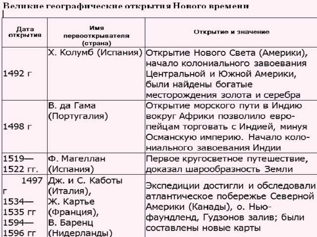 Таблица «История географических открытий» — 2 курс — LiveJournal