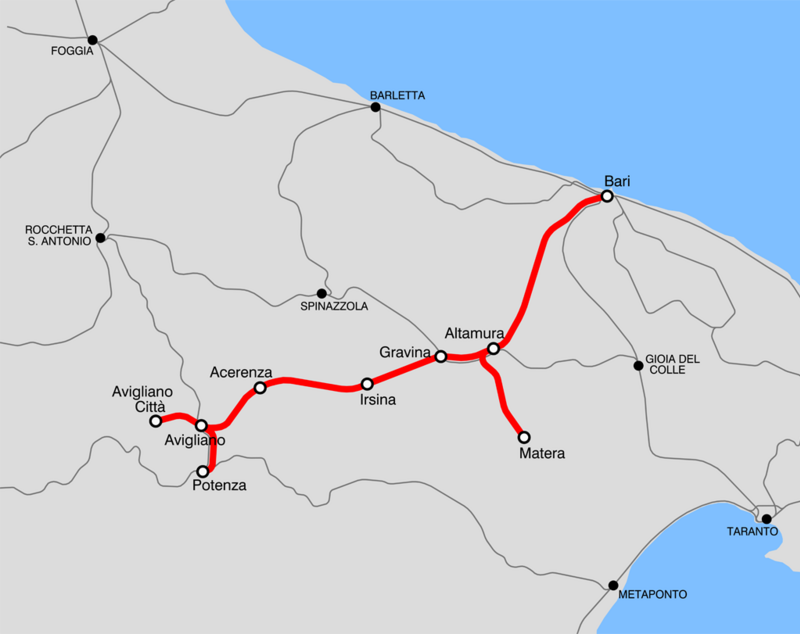 Для сравнения, по времени в пути расстояние между Фоджа и Бари составляет около 120 километров. Маршрут Autostrada (быстрая платная дорога в Италии) между этими двумя городами можно было развивать с максимальной скоростью 130 км / час. С учетом остановки для оплаты проезда, это путешествие займет около часа на машине, как и на Eurostar. Обычный поезд занимает на 40 минут больше, потому что он останавливается на многих небольших станциях.