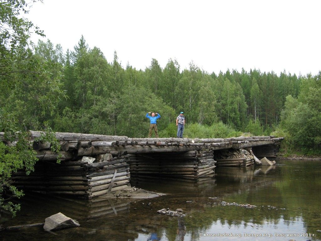 Ниже берега Ивделя укрепленны бревнами в несколько рядов, чтобы сплавные бревна не выталкивало на берега, бревноотбойник.
