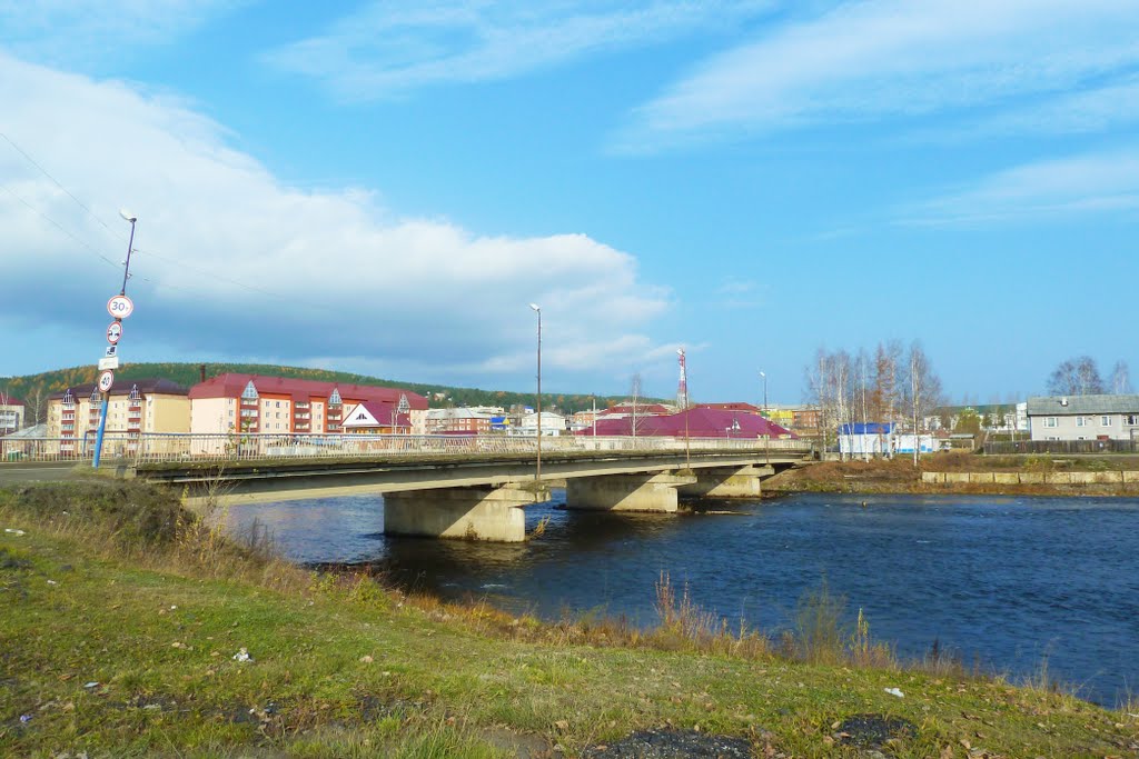 Выше моста через 300м старая разрушенная плотина, в накопительном пруду, выше плотины скапливались бревна и потом их сплавляли по реке. В узком месте в долине реки сооружена насыпная дамба высотой 10-15 метров. Выше плотины река разливается, заболочена, вытекает из разрушенной плотины невысоким водопадом.