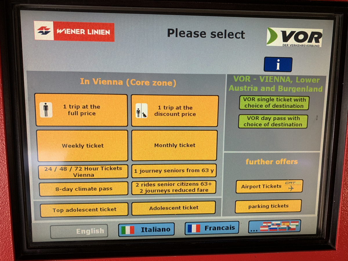 Билет обойдется вам в 4,4 евро — с этим билетом вы можете добраться до любой точки города, так как в стоимость входит одна поездка на любой городской транспорт. Он действует в течение двух часов после компостировки. Билеты в аэропорту продаются в специальных автоматах австрийских железных дорог OBB красного цвета.