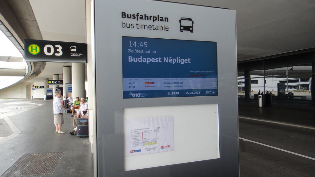 Автобус из аэропорта до Вены — самый дешевый способ добраться до города. От аэровокзала отправляется экспресс-шаттл Vienna Airport Lines, а также транзитом проходит автобус Eurolines в другие европейские города. Также проходит транзитный Flixbus. Ночных рейсов у автобусов нет, а билет в среднем обойдется в €8. В пути до центра города путешественники проведут около 45 минут, и столько же придется подождать в аэропорту. Это хороший вариант для самостоятельного путешественника или молодой энергичной пары без тяжелого багажа
