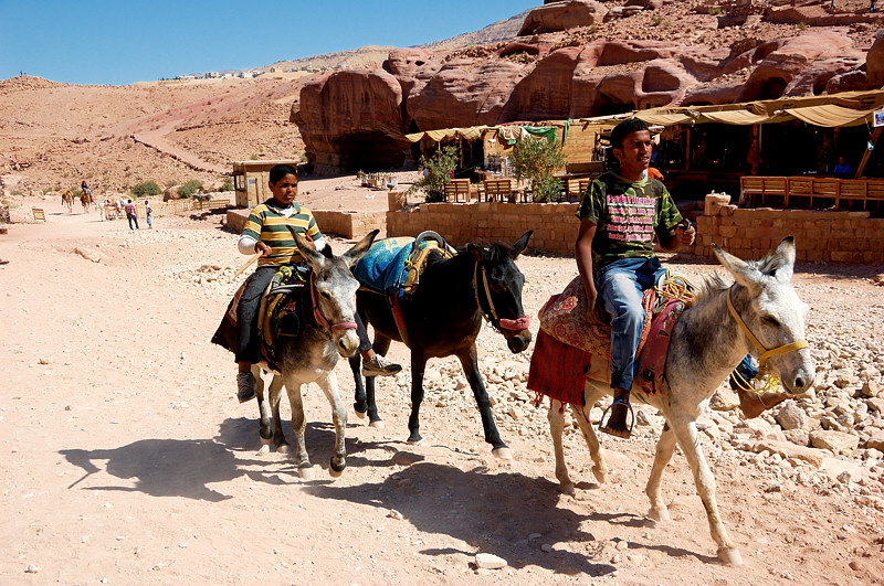 Рекомендую отправиться в Петру на рассвете, так как жара будет щадящей, и тот самый персиковый цвет у города именно под утренними лучами солнца. Позаботьтесь об удобной обуви, пешком предстоит идти долго (около часа туда и часа обратно) по плотному песку, головном уборе и бутылке с водой, так как ближайший «оазис» у храма Эль-хазне, а это 40-50 мин ходом. Можно, конечно, на ослике «Феррари», как его называют иорданцы, предлагая туристам, прокатится или верблюде, но за дополнительную плату. Очень актуально на обратном пути. Сувениров предостаточно, от магнитов до мозаик. Поэтому все, что касается Петры, лучше покупать в самой Петре — и выбор разнообразнее, и продавцы сговорчивее.