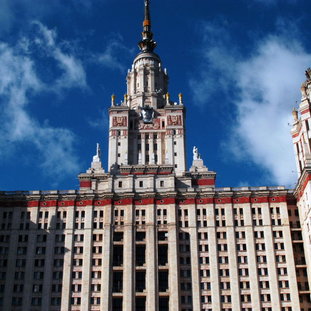 Семь Сестер МоскваЭто здание, спроектированное русским архитектором Львом Рудневым, заслужившим доверие Коммунистической партии, украшено различными статуями, например, статуями студентов у главного входа.