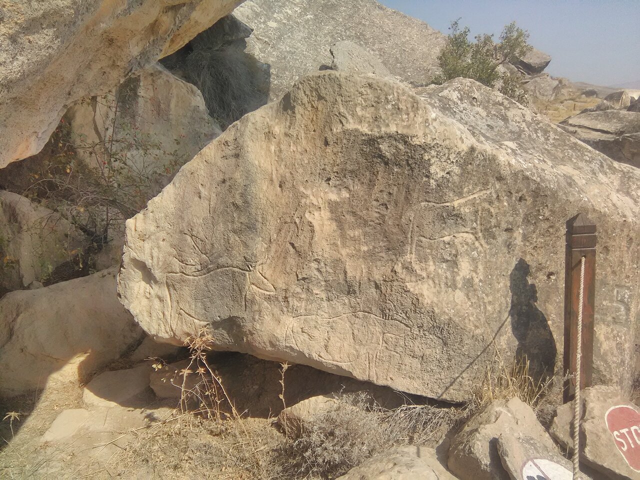 Но рисунки действительно поразили. Простейшие, конечно, но как, как их так ровно рисовали на скале? У нас так и карандашом не получится. А еще очень интересно рассматривать скалы в поисках рисунков. Таксист говорит, каждый раз находит что-то новое. При заповеднике, кстати, отличный музей, совсем новый, где много рассказывается и про рисунки, и про это место в принципе, в том числе и грязевые вулканы. Фото, конечно, плохо передают эти изображения, многие рисунки достаточно большие.