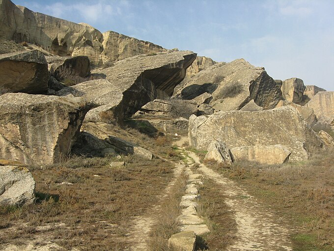 Лучшие экземпляры художественного творчества древних людей можно увидеть в горах Беюкдаш («Большой камень»), Кичикдаш («Маленький камень»), Джингирдаг, Шонгардаг и Шыхгая — это наскальные изображения, стоянка человека, надгробные памятники каменного века. Здесь же, если внимательно присмотреться, можно обнаружить остатки большого доисторического кромлеха.