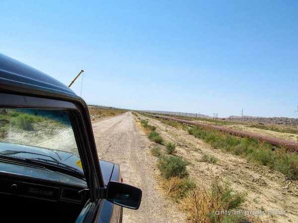 Азербайджан. Дорога к грязевым вулканам Гобустана.Тем, кто не хочет тратиться на такси, можно предложить доехать до Гобустана на общественном транспорте. До самого города и дальше по трассе мимо вулканов ходит 195 автобус. Едет он от остановки Торговый центр «Бина» (Bina Shopping centre), который расположен напротив пляжа Шихова, куда мы ездили купаться в прошлую свою поездку в Баку. Чтобы добраться до этого торгового центра из Баку нужно сесть на 125 автобус рядом Железнодорожным вокзалом Баку и станцией метро 28 мая. Но сразу хочу сказать, если 125 автобус еще достаточно комфортабельный, то 195 — без кондиционера и там только открытые форточки. Ехать на нем час по жаре я бы точно не выдержала! Стоимость проезда на 125 автобусе 0,2 маната по транспортной карте Baku card, на 195 автобусе — 0,8 манат. После 195 автобуса вы или воспользуетесь услугами таксистов у развилки, или сами отправитесь в путь пешком, если найдете в себе силы. Но даже на такси дорога доставляет мало удовольствия, там сплошные ухабы и бездорожье. А в самом конце вас ждет затяжной и очень крутой подъем в гору. Ощущение было такое, что машина не справится с нагрузкой, заглохнет и покатится вниз, но все обошлось. И все наши переживания были не напрасны — мы увидели знаменитые вулканы!