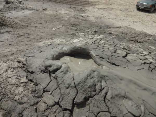 Грязевые вулканы оказались весьма непредсказуемы. Первый же плюнул в меня темной жижей. Мы немного побродили, пофотографировали и поехали дальше.