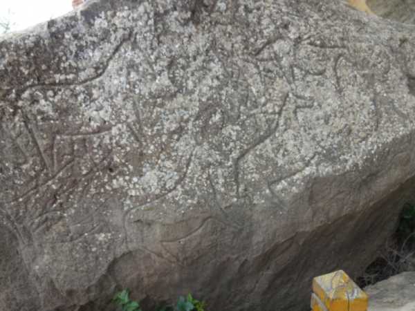 На фото выше отлично видно рисунок быка. Именно это животное встречается чаще всего на скалах Гобустана. А еще, можно рассмотреть куланов — маленьких лошадок.