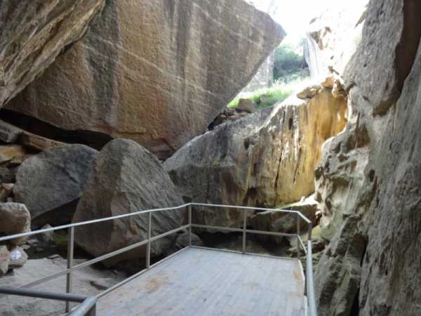 Хорошо, что мы были на машине и не пришлось топать в гору. Тропинка древнего человека вьется между скал, приближаясь к пещерам.
