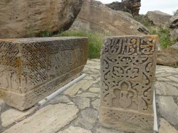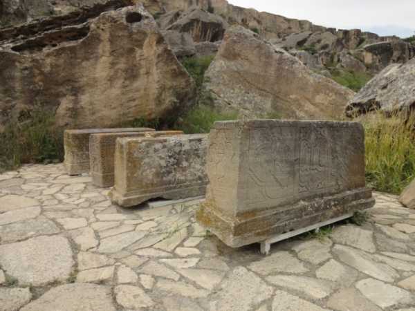 Помимо наскальных рисунков, в Гобустане сохранились уникальные надгробия. Разумеется, надгробия не периода мезолита. Как пояснил нам экскурсовод, такие красивые надгробия могли быть только у жрецов или очень почитаемых людей — вождей племени.