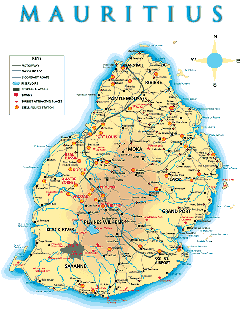 Столица — Порт-Луи. Там же находится единственный международный аэропорт Plaisance Sir Seewoosagur Ramgoolam. Такое длинное и труднопроизносимое название сокращается для привычного для европейского уха — Плаисанс.
