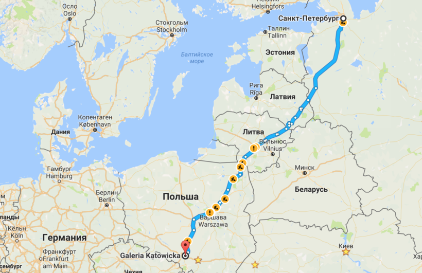 Поездка на автобусе из Санкт-Петербурга в Ригу.