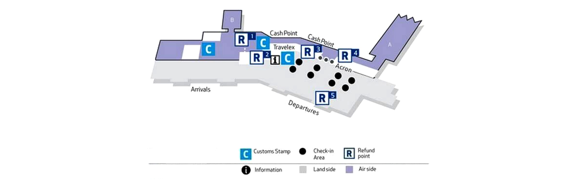 - Таможенный пункт находится в зоне выхода на посадку Терминала, напротив выхода H02 (после паспортного контроля): предъявите ваши покупки и поставьте таможенную печать на формах Tax Free;