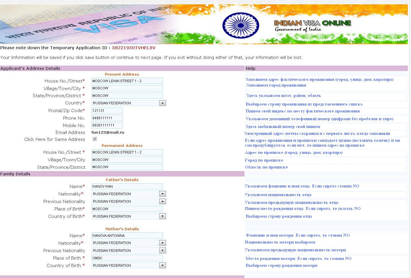 Визовая анкета заполняется в режиме онлайн на ресурсе indianvisaonline.gov.in/visa/indianVisaReg.jsp. Времени для этого отводится достаточно, причем не обязательно вносить все сведения за один раз. После того как анкета заполнена, ее требуется распечатать и подписать в двух полях Signature.