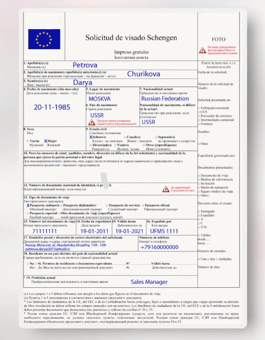 - Данные биометрического паспорта (серия и номер) записываются в одну строку без пробелов, для загранпаспортов старого образца в середине проставляется литера N. Серия и номер внутрироссийского паспорта также записываются слитно в одну строку.