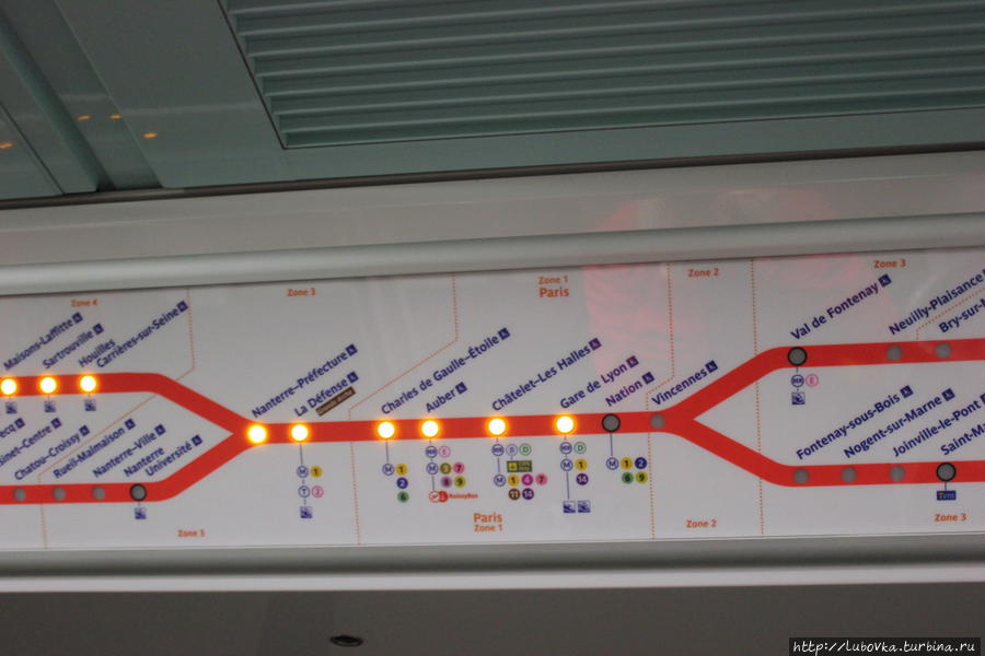 Электричка RERЭто отличный способ добраться до парижского Диснейленда, аэропорта Орли или Шарля де Голля, Аустерлиц или Лионского вокзала, Версаля, музея Орсе, Дома инвалидов, Нотр-Дама и многих других интересных и важных мест, куда стремится любой путешественник. На каждом перроне также есть электронное табло, предоставляющие информацию о крайних и промежуточных пунктах.