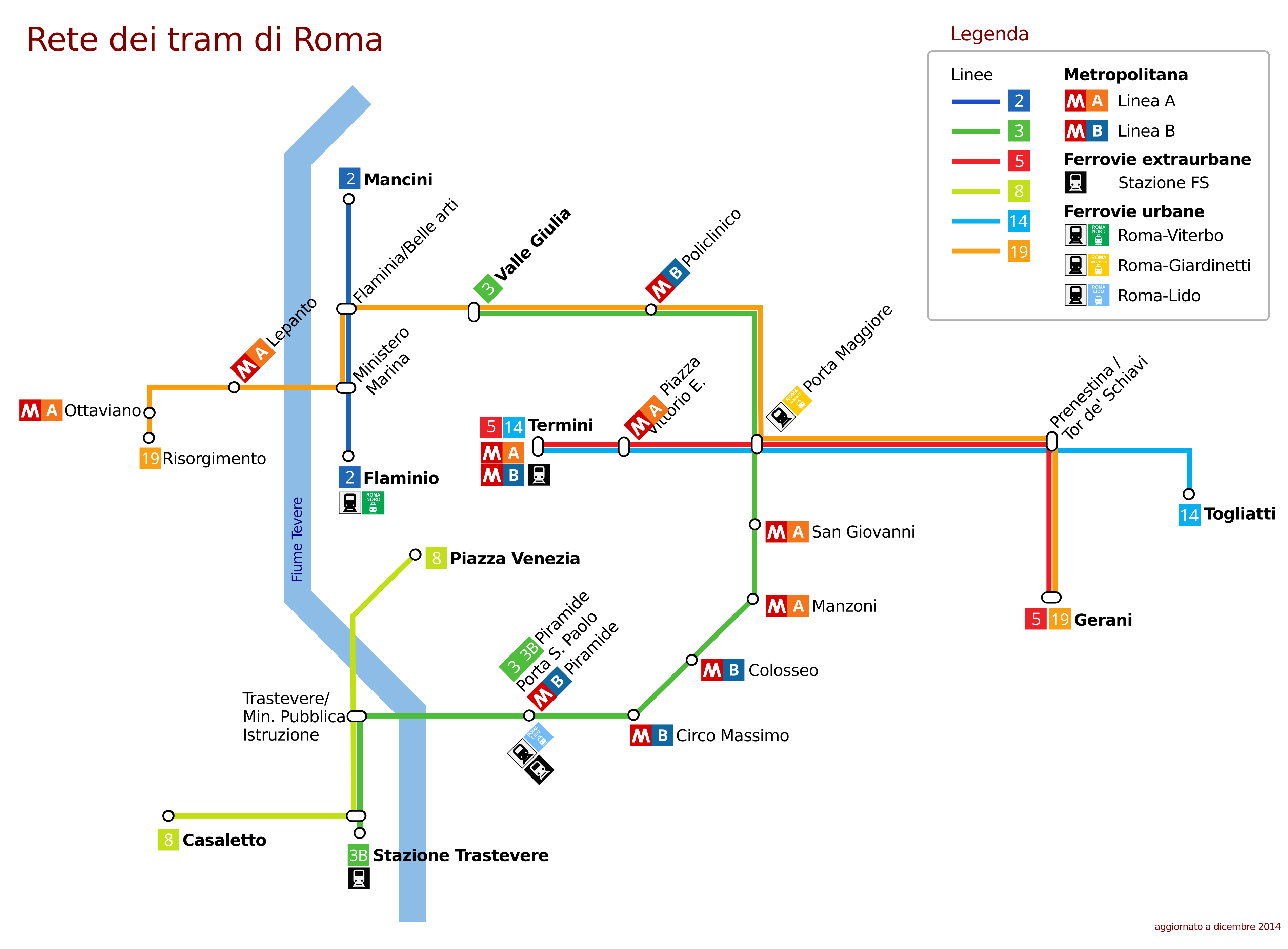 В состав метрополитена Вечного Города (Metropolitana di Roma) входят не только классические подземные линии, но также наземные электропоезда. Они управляются государственной компанией ATAC. Это удобно для пассажиров: один билет действителен на все виды транспорта. Его цена зависит тарифной зоны, а купить проездной можно везде, даже киосках, где торгуют сигаретами.