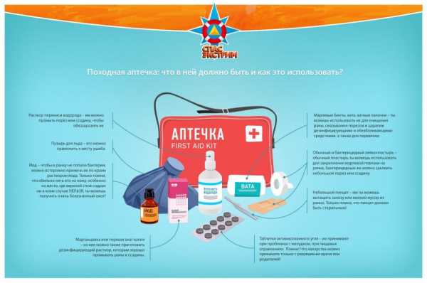 Возьмите с собой небольшой алюминиевый котелок, флягу для воды, термос, кружку, ложку и складной нож. Оставьте в своем походном рюкзаке место и для аптечки, в которую положите спрей, крем или гель для защиты от насекомых, средства от ушибов, ожогов, порезов, головной и зубной боли, бинт, вату.