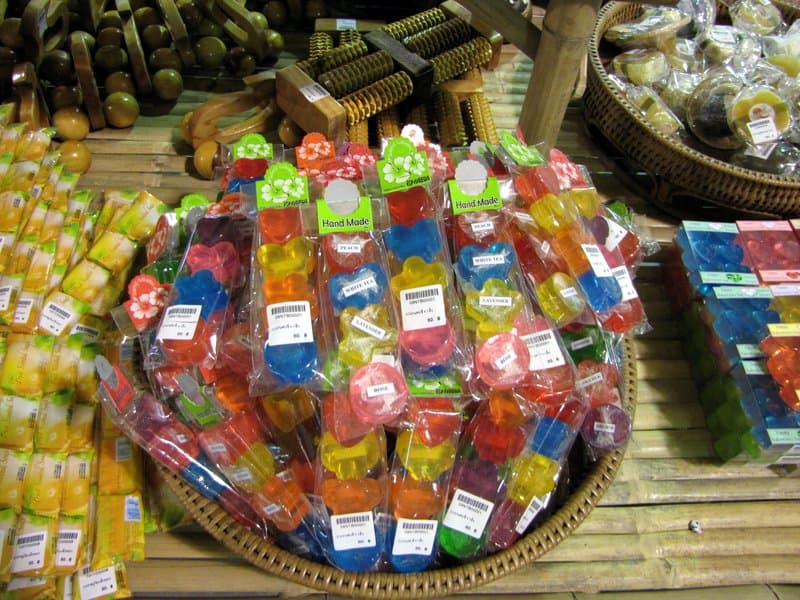 На рынках Бангкока вы найдете мыло ярких цветов. Все формы и размеры вы можете обменять на формы ананасов, плавающие цветы или различные другие творения ручной работы! Следите за ценами, это одна из самых дешевых вещей, которые можно купить в Таиланде, и один из лучших подарков, которые можно купить в Таиланде, чтобы привезти домой, чтобы поделиться с друзьями и семьей.