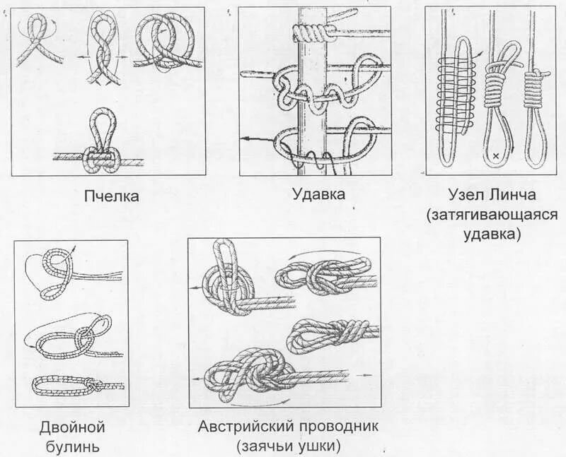- для привязывания веревок к чему-либо воспользуйтесь возможностью «удавкой, стременем» или «булинь»;