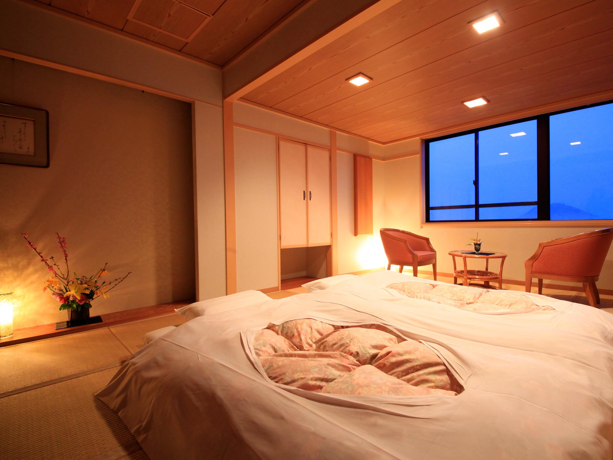 Вечером они разложат футоны, пока вы ужинаете или находитесь в онсэне. Утром всё уберут во время завтрака.