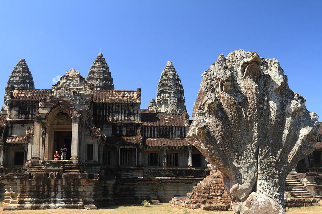 Храм Ангкор-Ват, город-храм в Сием-Рипе, посвящён индуистскому богу Вишну и считается одной из главных достопримечательностей Камбоджи. Это самая большая культовая постройка в мире. Только центральная часть состоит из сложной трёхуровневой конструкции с множеством лестниц и переходов, и венчает ее пять башен. Всего на территории более 400 квадратных километров расположено порядка 200 монументов.