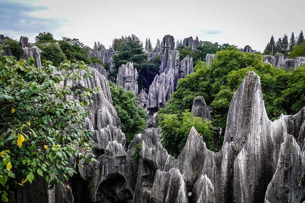 В некоторых местах высота «каменного леса» достигает 50 метров, а в нем растут редкие виды настоящих, живых деревьев.