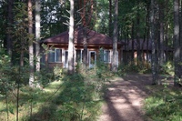 Находятся в сосновом бору. Расстояние до озера от 200 до 350 метров. Каждый номер с отдельным входом – выходом на улицу.