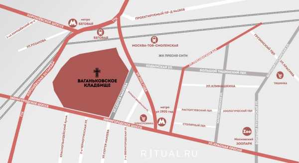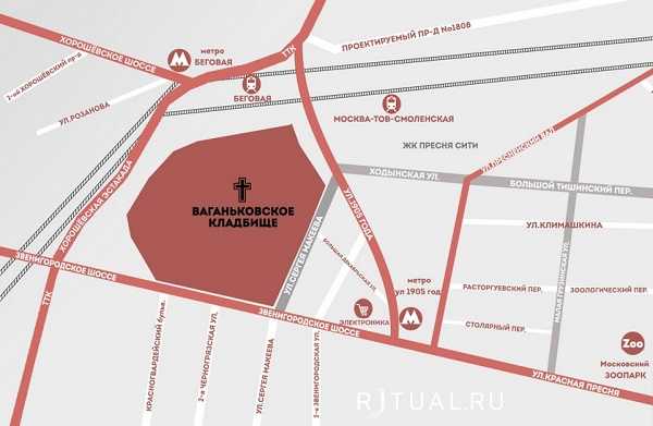 Как добраться: на автобусе № 706м. Остановка — «Ваганьковское кладбище». Ниже — схема, как пройти пешком от станции метро «Улица 1905 года».