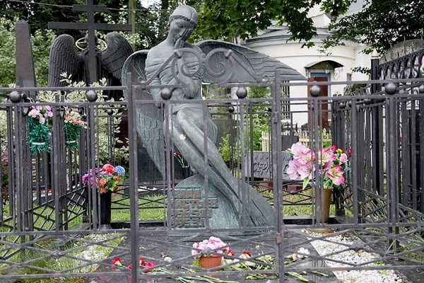 Невозможно пройти мимо некоторых надгробий, настолько поражают они своей архитектурой. Так, на могиле дочери художника А. Шилова возведен золотой ангел.