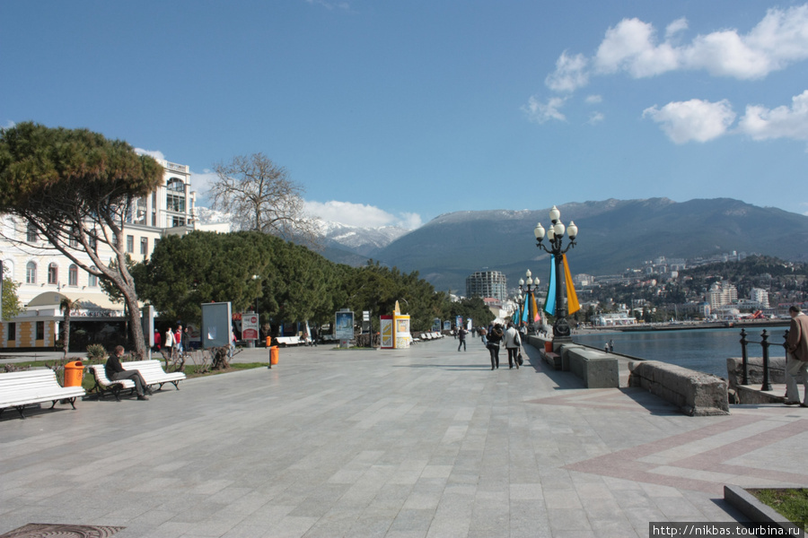 Морская набережная Ялты ( Набережная, ), с множеством достопримечательностей и недавно отремонтированная (2003–2004 гг.)