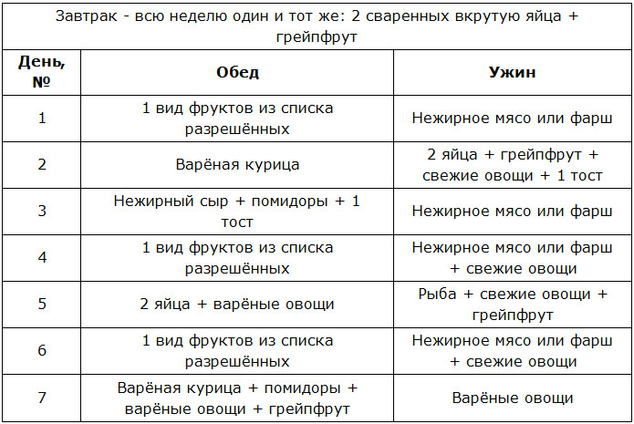 4-й день кремлевской диеты 5-й день кремлевской диеты
