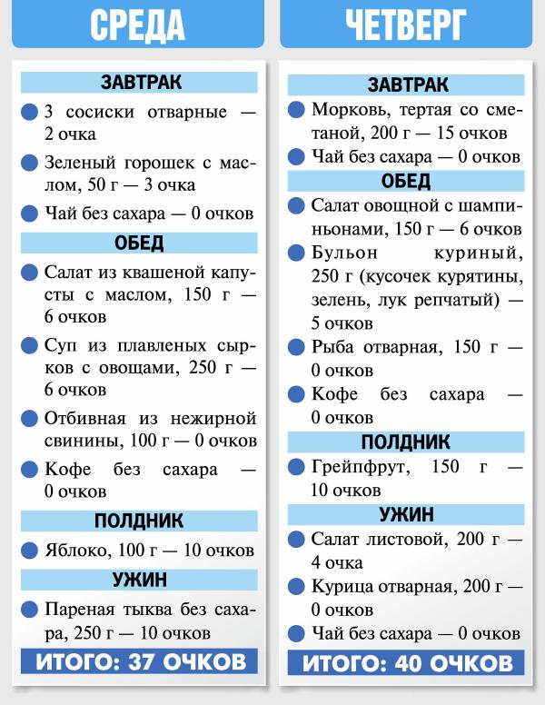 Представленное меню кремлевской диеты для простых людей является примерным рационом, поэтому свое питание вы будете подбирать для себя самостоятельно, главное не забывайте придерживаться правила подсчета баллов. Хотите похудеть – норма 30-40!