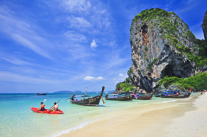 В центре пляжа Восточный Рейли находится пирс для лодок, куда постоянно прибывают толпы туристов, поэтому нормальный пляжный отдых тут не получится. Загорать и купаться придется на противоположной части полуострова – Рейли Вест или на пляже Прананг. Зато цены на отели здесь дешевле, и можно выбрать шикарный Bhu Nga Thani Resort & Spa 4* с бассейном, а на море ходить по пешеходной дорожке (вокин-стрит) на пляж Западный Рейли с утра или ближе к вечеру, чтобы посмотреть на красивый закат.