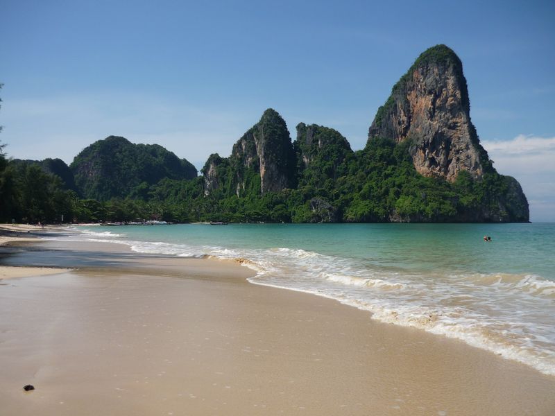Пляж Прананг (Phra Nang) – это самый живописный и красивый пляж в южной части полуострова Рейли в Краби. Поэтому здесь всегда очень много туристов, которые специально приезжают сюда, чтобы посмотреть большую пещеру с фаллосами. Купаться на пляже на Прананг – одно удовольствие: вода в море чистая, нет сильных течений, а мелкий песок белого цвета мне показался очень приятным на ощупь.