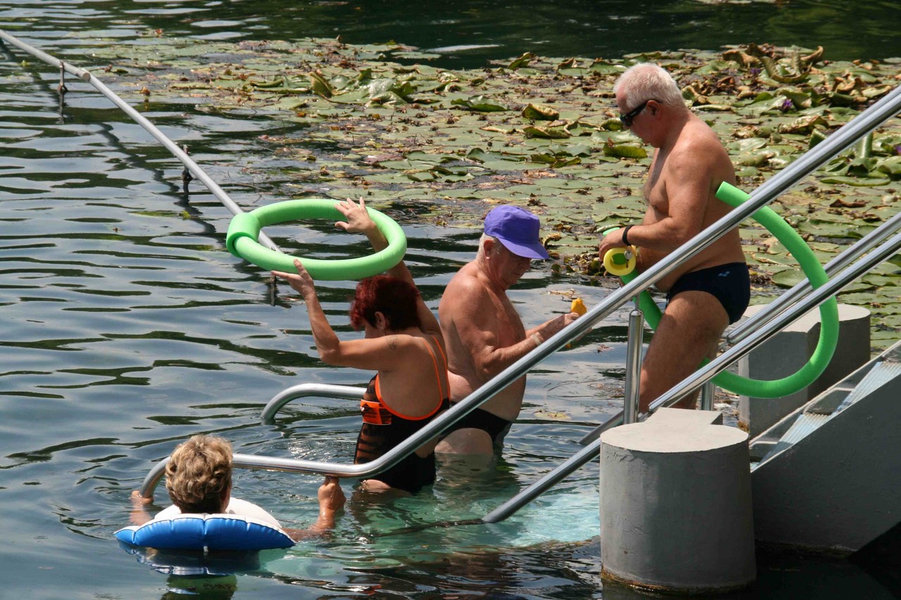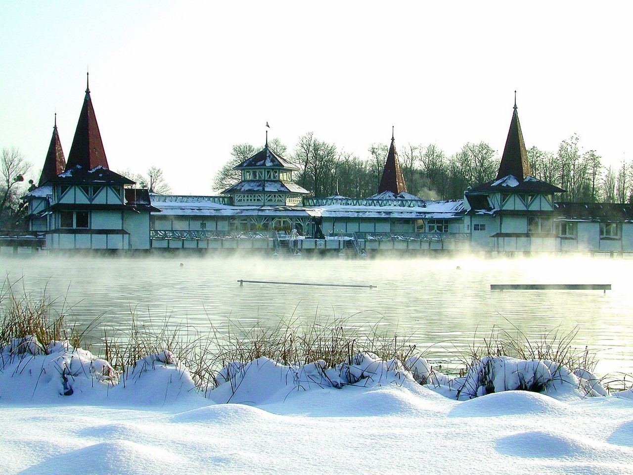 По центру озера Хевиз расположилась остров-лечебница, попасть туда можно по мостику, перекинутому с берега. Хевизская купальня, совмещенная с Больницей Святого Андрея, открыта для обычных посетителей-туристов и людей, приехавших на санаторное лечение с ревматологическими заболеваниями. А еще воды озера имеют целительный эффект для болезней опорно-двигательного аппарата, аднекситов, бесплодия, дерматитов, гормональных сбоев. Если вы здоровы и решили просто искупаться в необычном термальном озере, то достаточно приобрести билет. Здесь же можно сходить на массаж, посетить грязелечебницу и СПА. Мы уже говорили, что вода в озере теплая даже зимой, но если вы чувствуете себя некомфортно, когда, плавая в озере, наблюдаете покрытые снегом берега, то можно переместиться в крытый бассейн, вода туда поступает напрямую из водоема.