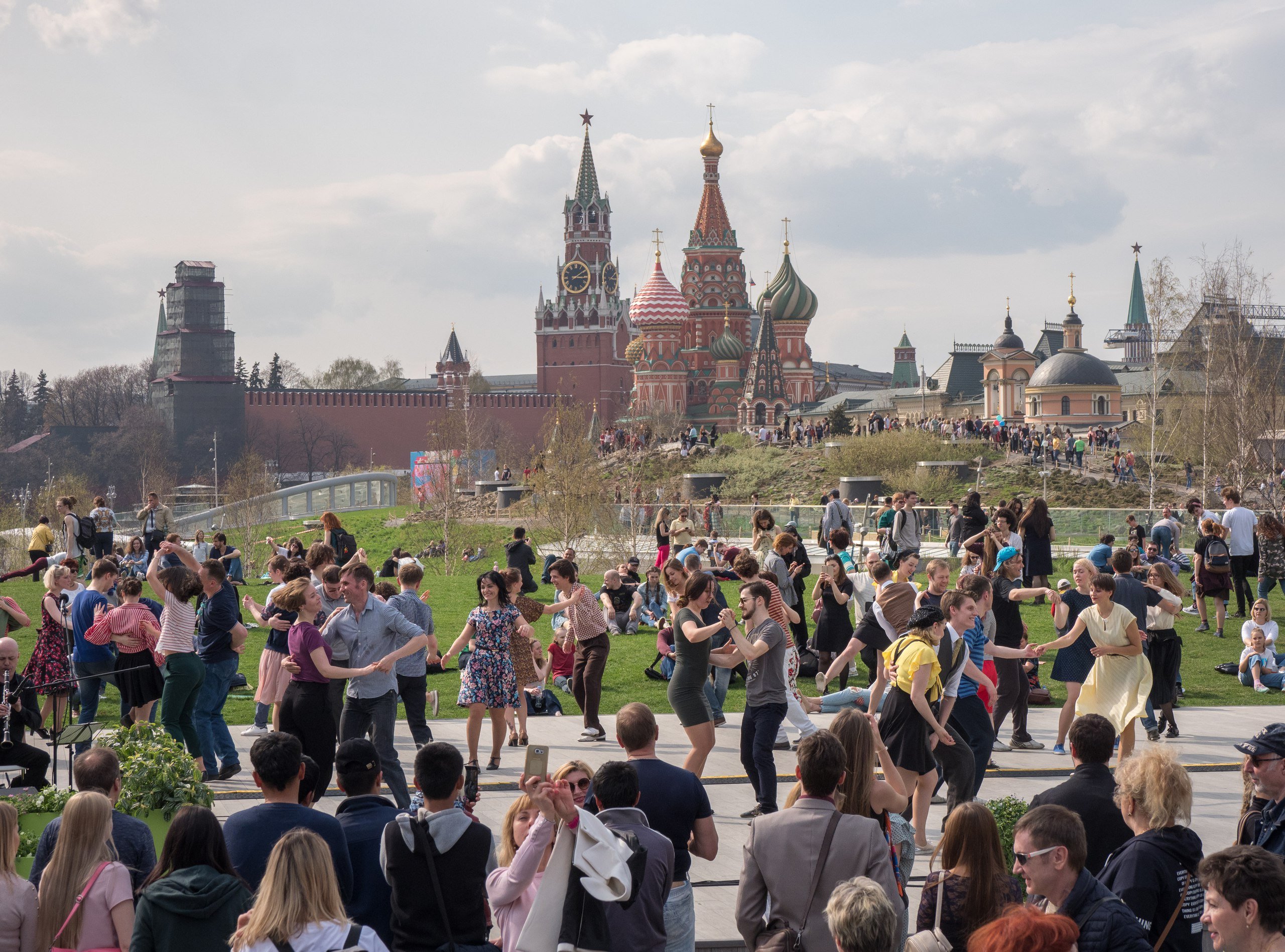 К куполу концертного зала предлагается подойти по знаменитому «парящему мосту», ставшему главной достопримечательностью парка «Зарядье».