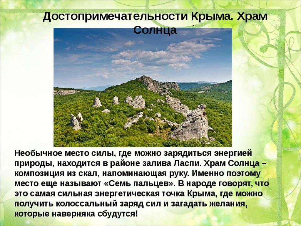 Равноудаленность Крыма от Экватора и Северного полюса, граничное положение на стыке Европы и Азии, навсегда определили его роль как перекрестка народов и цивилизаций с необычайным разнообразием памятников природы и истории, а также современной экономики и культуры.