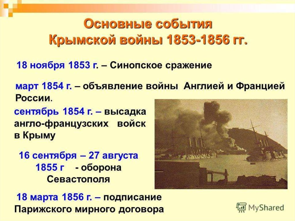 хронологическая таблица по теме крымская война 1853-1856 гг. оборона Севастополя