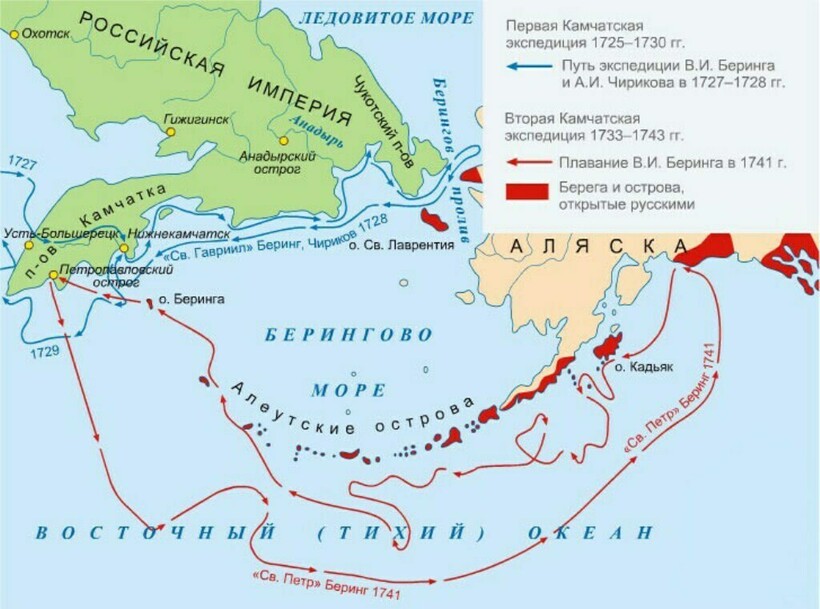 Беринг плыл на север вдоль побережья Камчатки и обогнул Чукотский полуостров, невольно пройдя через то, что сейчас известно как Берингов пролив. По мере того как они продолжали свой путь на север, а берег, за которым они следовали, поворачивал на северо-запад, Беринг почувствовал, что установил, что Америка не связана с Россией, и, поскольку приближалась зима, развернул корабль и вернулся на Камчатку. Летом 1729 г.Беринг снова отправился в путь, на этот раз на восток. Он снова не увидел побережья Америки и, по-видимому, выполнив свою задачу, направился в Охотск, а затем в Петербург, представив свой доклад в 1730 г. В Петербурге интерес к Америке и ее связи с Сибирью не ослабевал. . Под руководством царицы Анны была организована вторая экспедиция, названная Великой Северной экспедицией. Это была огромная операция, в которой должна была участвовать большая партия из Академии наук. Намерение состояло не только в том, чтобы определить раз и/или всю связь между Азией и Америкой, но и нанести на карту арктическое побережье и провести геологические и другие научные исследования по всему северу Сибири.