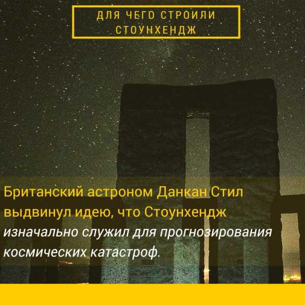 - Данкан Стил, британский астроном, в 1995 году выдвинул версию, что сооружение имело астрономическое предназначение и позволило избежать землянам космической катастрофы. Также эту гипотезу доказывал другой ученый, Джеральд Хокинс. Но при этом он не отбрасывал теорию оккультного использования места.