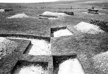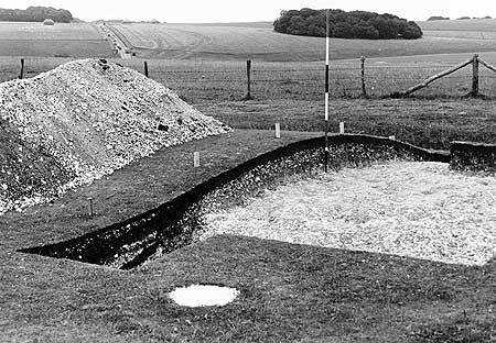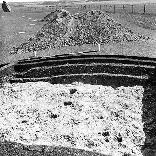 При раскопках в отдельных районах рва были обнаружены кости крупных животных, а в некоторых местах останки сожженных человеческих трупов. И хоть начальная цель возведения этого сооружения как и прежде остается тайной, антропологи утверждают, что в период до появления первых каменных глыб, памятник был местом упокоения останков. Сейчас известно о захоронениях по крайней мере 64 людей эпохи неолита в Стоунхендже.