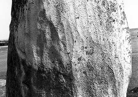 - 30 каменных блоков. Глыбы из камня весом в 25 тонн каждая, высотой – четыре метра, шириной – около двух, древние строители поставили в форме круга, диаметр которого составлял 33 м. Соединили их между собой способом «паз-шип», положенными сверху поперечными камнями. Каждый такой камень – чуть более трёх метров в длину. Расстояние между верхней частью этих перемычек и землей оказалось около пяти метров. В наше время сохранилась дуга, состоящая из тринадцати глыб с перекладинами.
