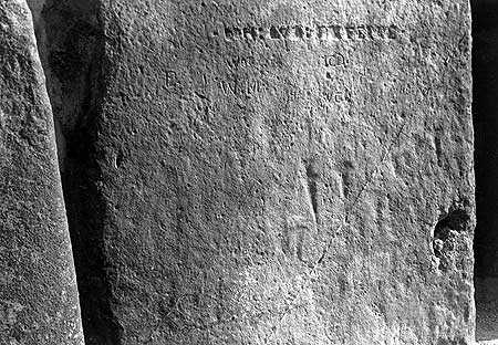 Такие циклопические блоки тоже отбраковали и вывезли — какой-то охламон при изготовлении не удержался и пальцем буквы латиницы написал. Латинице на памятнике працивилизаций быть не положено.