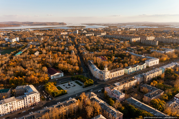 Место обладает определенной природной красотой – оно находится на излучине широкой реки Амур, которая течет на восток из сибирских глубин (где она очерчивает большую часть границы между Россией и Китаем). поворачивает на север у Хабаровска и впадает в Охотское море. Летом на берегу реки может быть достаточно приятно. Но вряд ли можно было себе представить более негостеприимную среду для человеческого поселения. В городе зарегистрированы температуры в пределах от 38 o C летом до -47 o C зимой. Семь месяцев в году город находится под снегом и льдом.