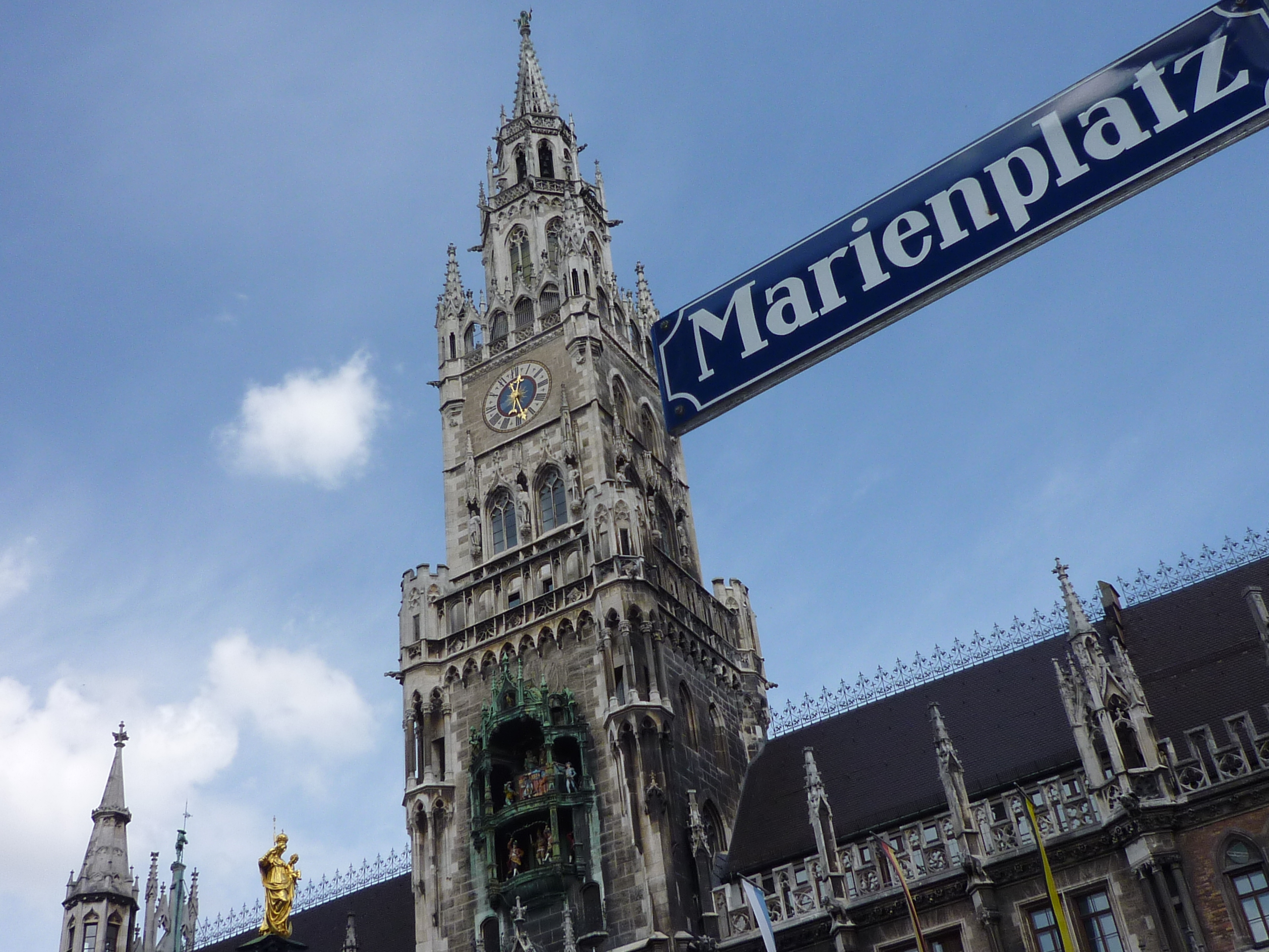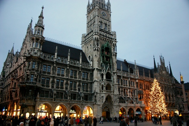 Если окажетесь на Мариенплац в 11 утра, полдень или в 5 вечера, увидите, как в часах на ратуше движутся фигурки герцога Вильгельма V и его супруги, герольдов и рыцарей.